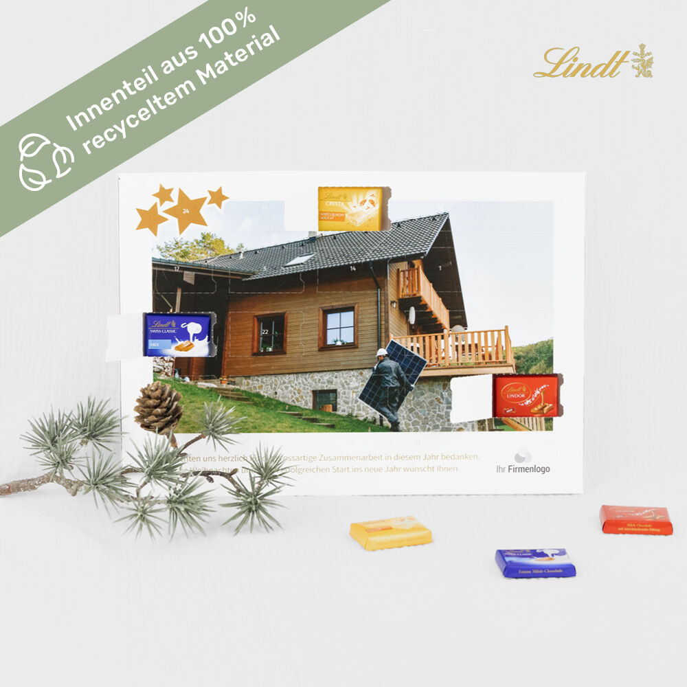 Liebevolle Tischkalender mit 24 exklusiven Lindt Napolitains assortiert, welche einen einzigartigen Geschmack versprechen. Gestalte die Frontseite mit persönlichen Fotos oder Texten. Das Inlay ist aus 100% recyceltem Material hergestellt.